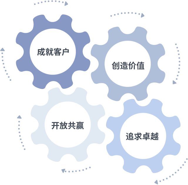 成就客户是一切决策的出发点,创造价值是衡量所有工作的标准,追求卓越是公海彩船做事做人的态度,开放共赢是公海彩船的格局也是最终的结果。价值观的齿轮环环相扣,推动着组织里的每个人不断向前。